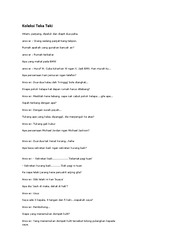 Jadi jom kita selongkar koleksi Teka-teka ah teka-teki uh.